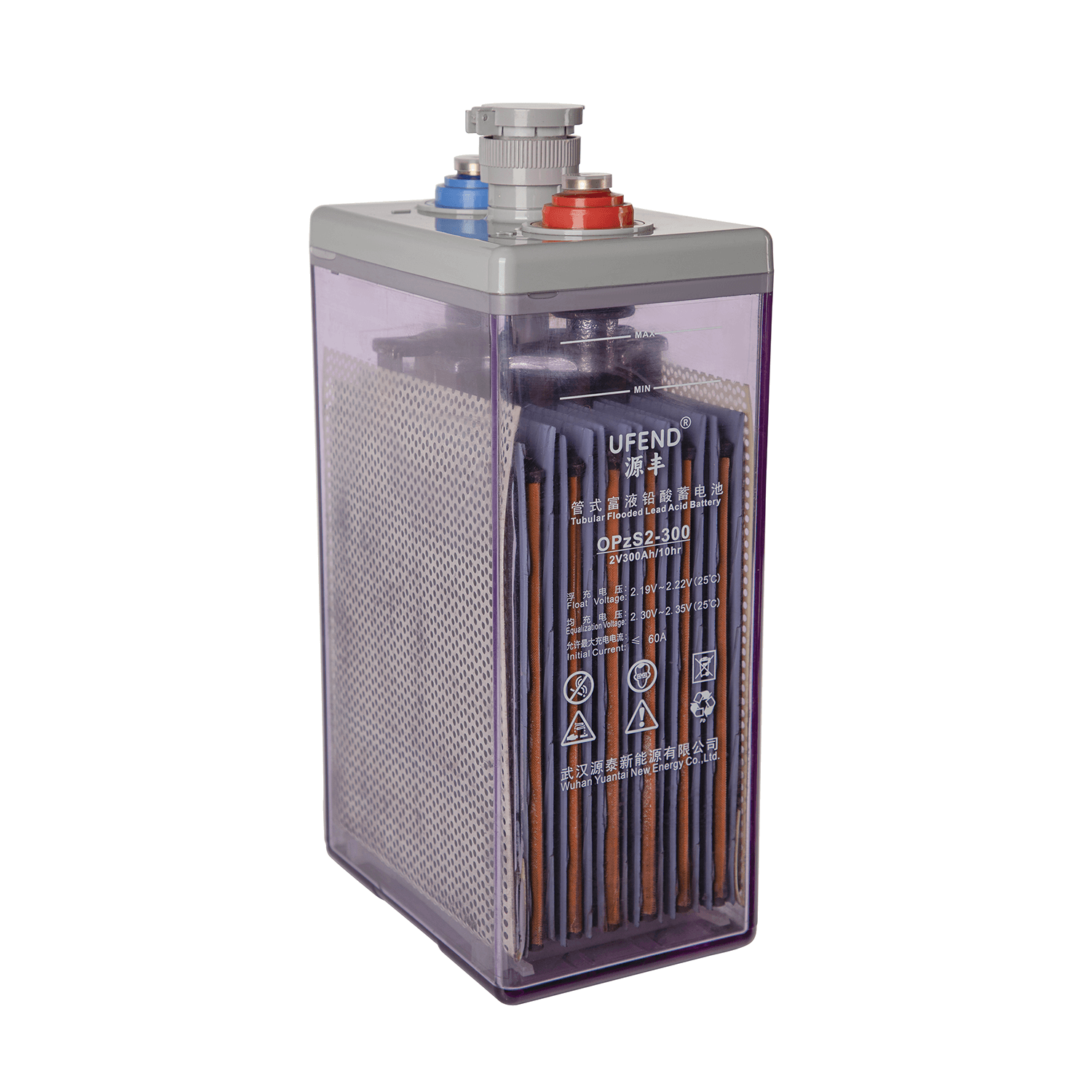 武漢源泰新能源有限公司生產的 OPzS 系列富液管式極板固定型防酸式鉛酸蓄電池 , 符合 IEC60896 標準及 JISC-8707 標準要求。該系列產品應用于電力、通信、不間斷電源系統、無線電廣播等備用電源系統。管式正極 板結構 , 防酸隔爆 , 使用安全可靠。
